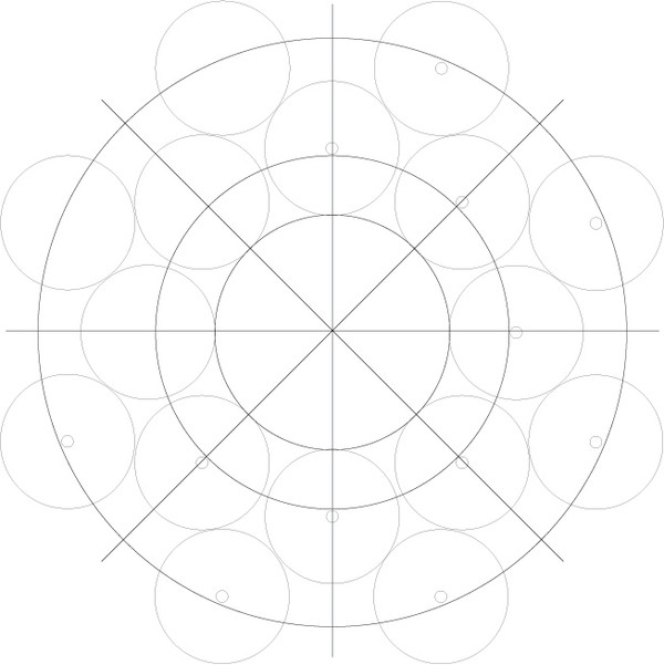 En principio construí una cúpula octogonal. Esta tenía una semiesfera octogonal grande en el centro, 8 al rededor de esta y otras 8 más afuera.