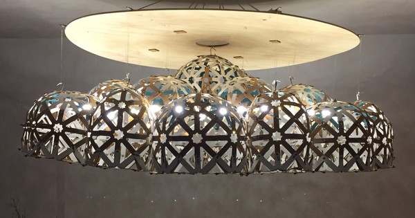 THE ISLAND is the mystery in the form of the earthly. It is perhaps a dome, a mocarab, a mandala, a three-dimensional geometry, a kaleidoscope, a big puzzle or all at once. It is made up of 614 modules (478 squares and 136 triangles) that form a composition of 17 octagonal and 8 hexagonal domes distributed on three levels, the central one being the highest and the largest. The sides of each module have 3 finger-like radii, the central radius being slightly longer to produce the spherical effect.