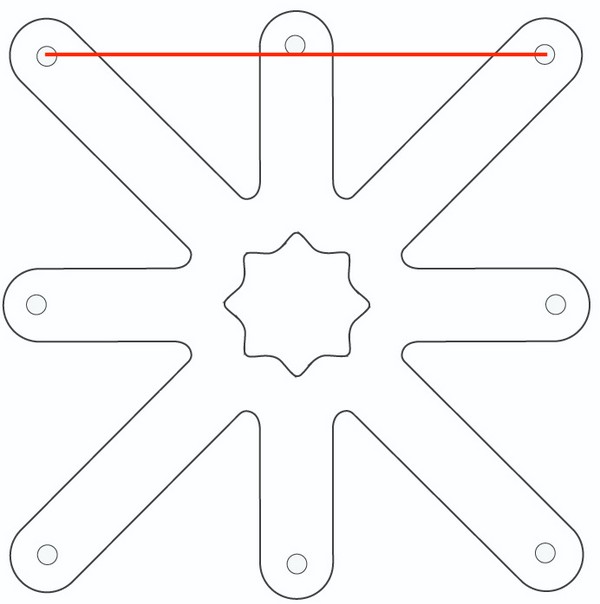 El centro de cada módulo tiene forma de estrella vacía (estrella de 8 puntas en el cuadrado, estrella de 9 puntas en el triángulo).