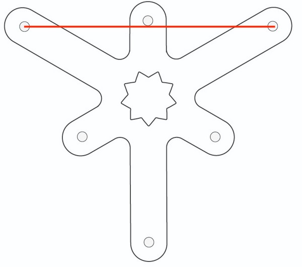 En el triángulo, opté por poner la estrella de 9 puntas, ya que al hacer girar un triángulo equilátero 2 veces sobre su eje, por lógica se moverá 40º y se producirá una estrella de 9 puntas.