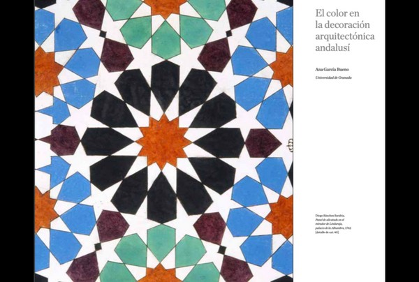 Los colores de los alicatados en La Alhambra: -Aún que he visitado muchas veces los palacios nasaríes de La Alhambra y los he pintado delante de ellos con acuarela, quise asegurarme bien de la buena elección de los colores. Encontré este documento de las pinturas que hizo el pintor Diego Sanchez Sarabia en el año 1762, directamente del recinto, en el libro “El color en la decoración arquitectónica andalusí “ de Ana García Bueno, de la Universidad de Granada. Justamente pintó el alicatado de la geometría de estrellas de 12-9 en el Mirador de Lindaraja!