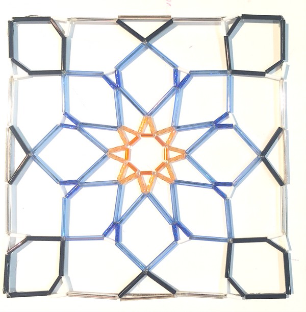 Queriendo alcanzar las estrellas: Comencé, entonces a trabajar el prototipo en cuanto a ajustar las medidas de los elementos para lograr las estrellas de nueve y de ocho puntas. Estas pruebas me fueron útiles para cualquier otro diseño, menos para Planeta T 2768.