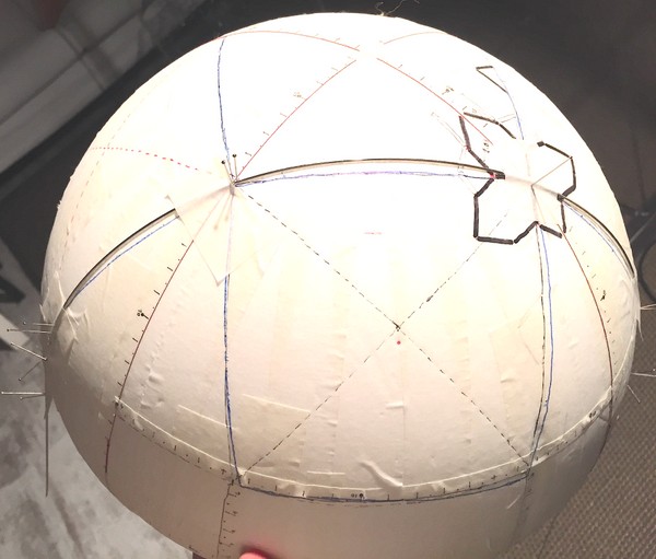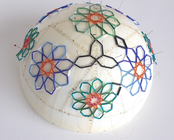 Encontrar los elementos precisos del patrón “curvado”. Para esto medí y le di coordenadas a mi bola de poriespán y fuí poco a poco, milímetro a milímetro encontrando las piezas precisas que las componen.