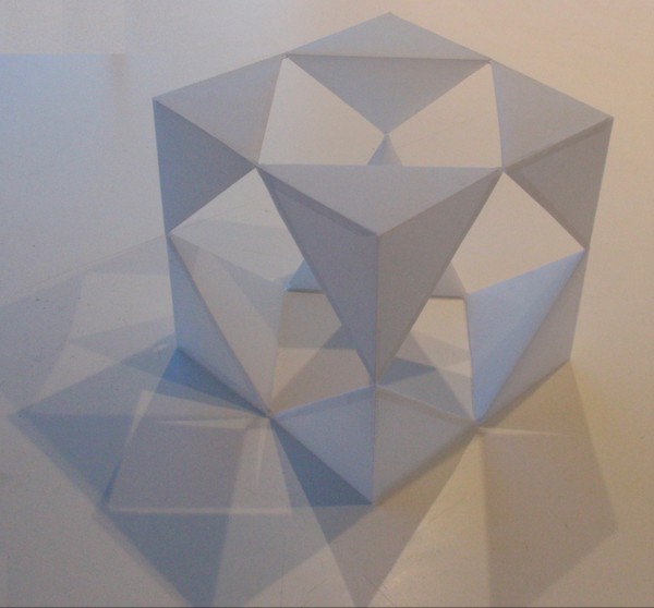 Las ocho pirámides que resultan de truncar un cubo, forman en su interior este cuboctaedro. Vivir el espacio interior ha sido una experiencia muy enriquecedora, tiene ángulos y juegos de luz y espacio, que no dejan de asombrar.