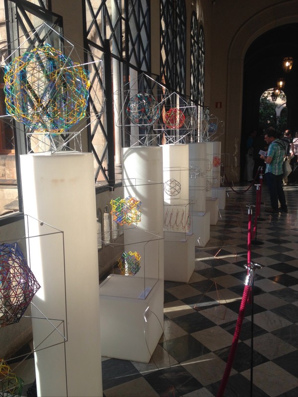 Así fue cómo, con esta breve exposición, experimenté por primera vez la de ser parte de un congreso de matemáticos, estar en medio de un gran movimiento y entusiasmo de profesores que buscan sistemas creativos para transmitir y comunicar las matemáticas a sus alumnos. Me encontré con artistas, inventores, creadores de sistemas didácticos… verdaderos maestros en la materia, en fín, me pareció una comunidad muy interesante… tanto, que repetí… porque después de esta exposición llegué al Congreso Bienal de la RSME de la Universidad de Zaragoza. Desafortunadamente no pude participar de ponencias y conferencias realmente interesantes… no podía ser… no se puede estar en dos lugares a la vez!