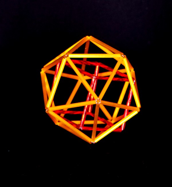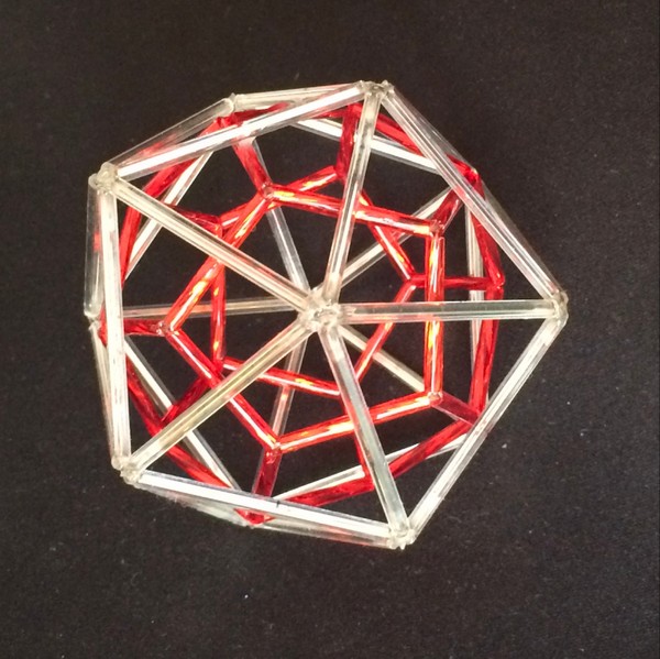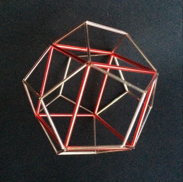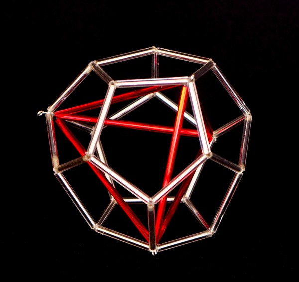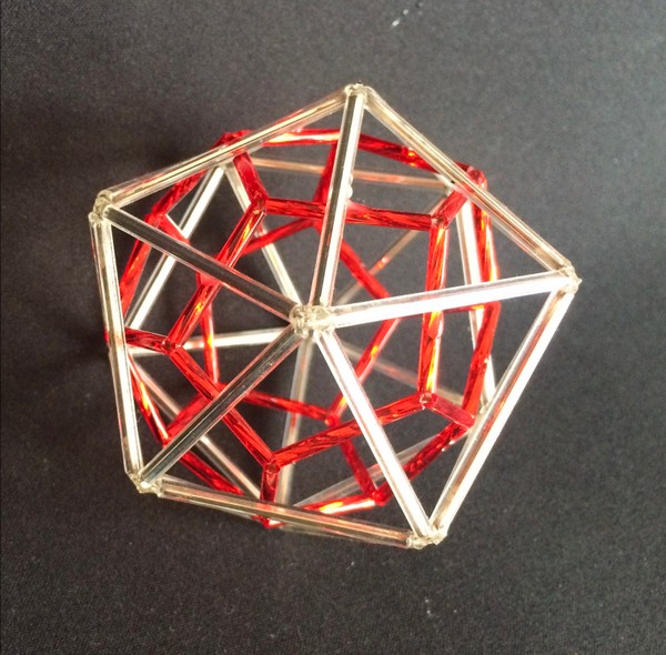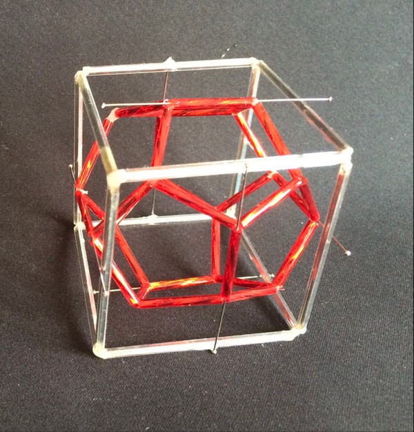 Tetraedro dentro de un dodecaedro. En este caso hay 5 tetraedros dentro. En la imagen de abajo sólo pude representar un tetraerdo de vidrio.