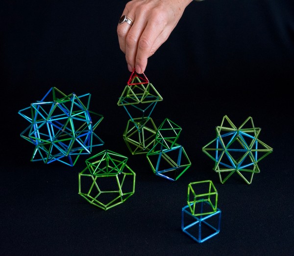 Pareciera que una vez construidos los cinco sólidos platónicos... ya está! y sigues un camino que te lleva a mas (como cantidad). Siento que no es asi. Una vez has descubierto estas cinco maravillosas formas has entrado en el mundo infinito que ellas encierran, siempre vuelves a ellas y te invitan a viajar entre LA UNIDAD Y LA MULTIPLICIDAD.