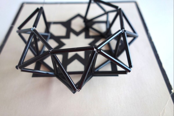 Medio octaedro convexo de medida 1, unido a otro medio octaedro cóncavo igualmente de medida 1 y vueltos a repetir hasta repetir 8 (16) que forman un aro de 8 (16).