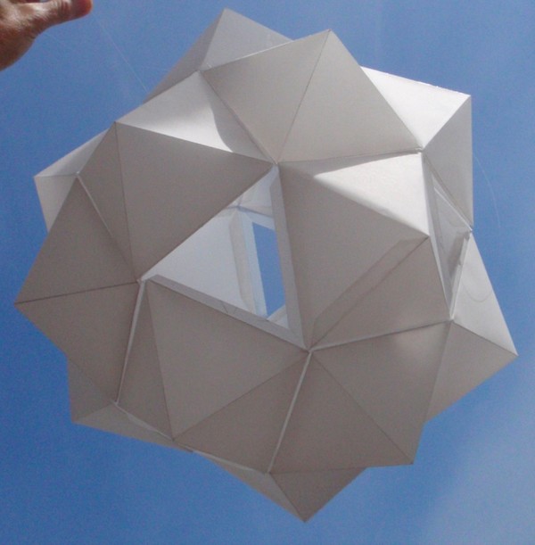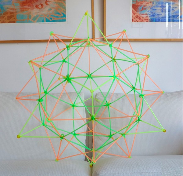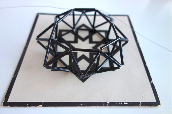 Hice 18 pirámides de base cuadrada con un patron plano, unidos con 8 triángulos.