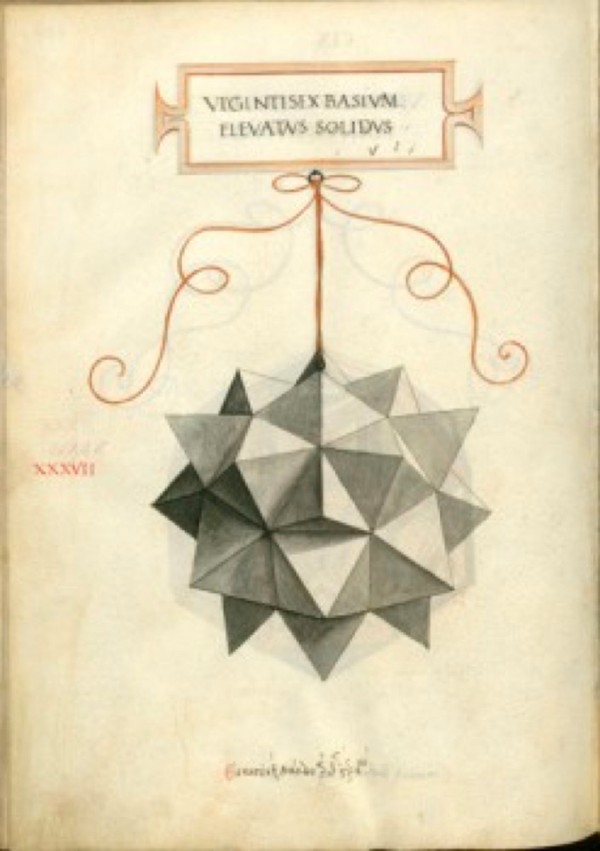 Este poliedro fue estudiado en profundidad por Luca Pacioli (su obra mas divulgada fue "De Divina Proportione" (De la Divina Proporción) escrita en Milán entre 1496 y 1498.