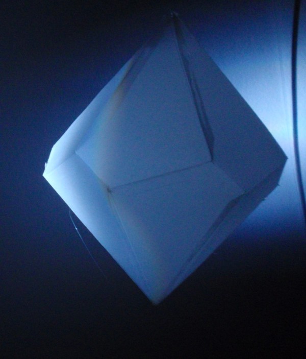 Estas cinco imágenes siguientes son el paso a paso para realizar la tridimensión de un octaedro (plano) dando como resultado un vigintisex.